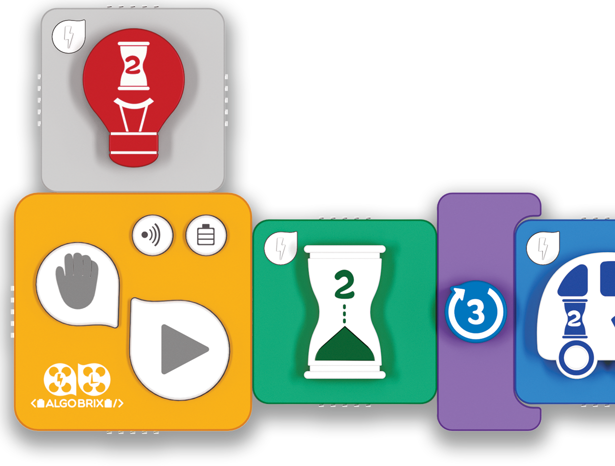 Young Engineers認為教學是要透過螺旋式的方式進行,每一堂的上課內容都是建立在先前的課程基礎上. 此 外,我們總是鼓勵新進學生重複以前的課程,以確保我們所有的學生都能迎頭趕上. 使用 Algobrix® 的有形編碼語言,首先,學生會先構建積木模型,然後使用功能和參數塊創建各種代碼序 列。最後,透過按下“播放”塊,使機器人執行編碼序列. 透過功能塊和參數塊匹配在一起,孩子創建了一組指令供機器人執行. 例如,向前移動或打開紅燈.